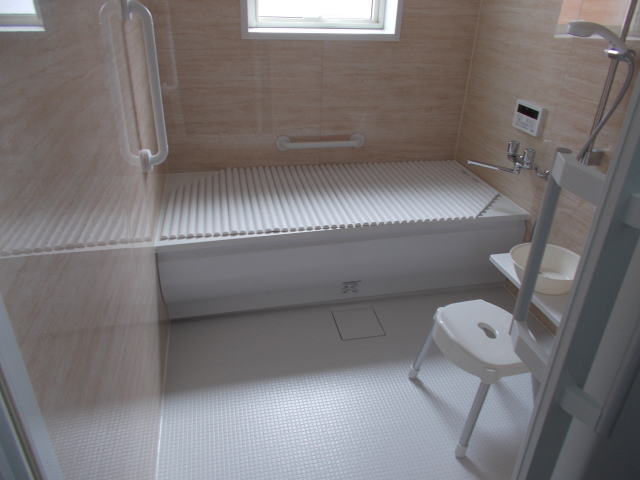高齢者のおじいさん、車椅子のおばあさんのために狭いトイレを広くしバリアフリーで段差も解消!便器の側まで行けるので1人でも安心です。